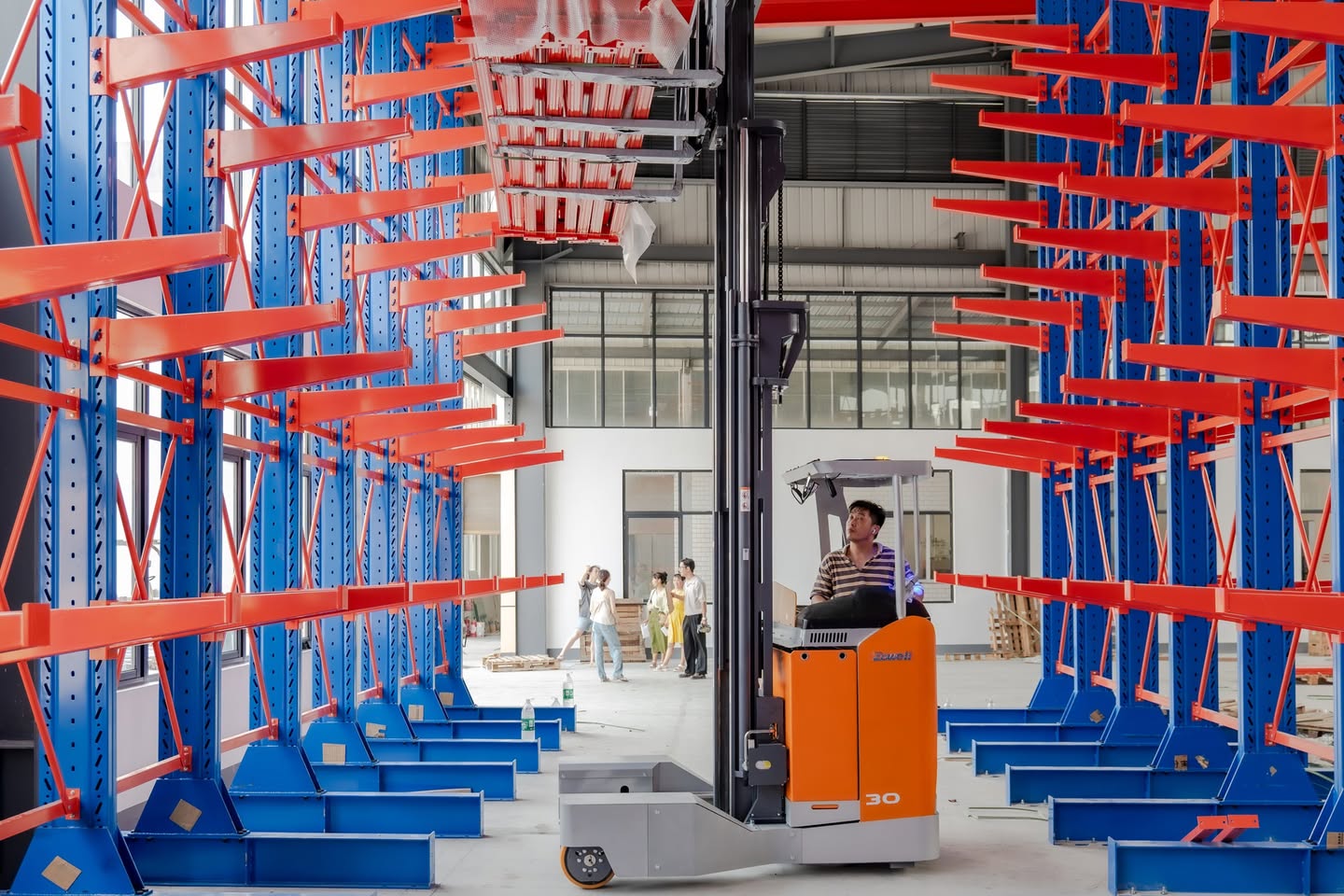 รถยกแบบหลายทิศทาง RSEW เป็นรถยกแบบนั่งขับที่เหมาะสำหรับการจัดเรียงสินค้าในทางเดินแคบและการขนย้ายวัสดุที่มีความยาว 3-10 เมตร (เช่น โปรไฟล์โลหะ แผ่นโลหะ แผ่นกระจก ท่อ ฯลฯ) โดยมีระบบบังคับเลี้ยว 360° ด้วยล้อทั้งสี่ และความสูงในการยกสูงสุด 10.5 เมตร