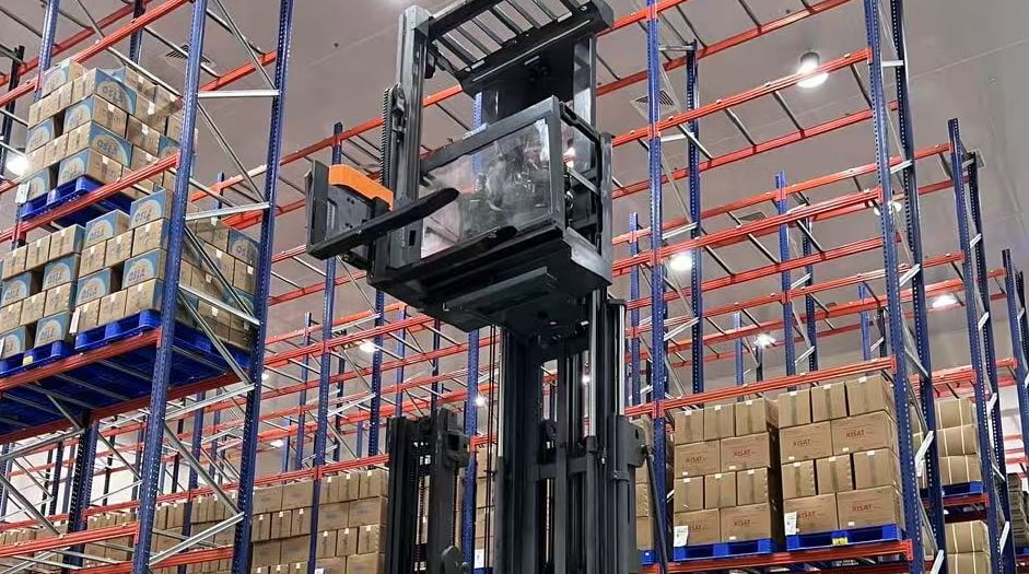 รถยกสามทาง VUE เป็นรถยกสำหรับทางเดินแคบที่รวมฟังก์ชันการวางซ้อนและการหยิบสินค้าเข้าไว้ด้วยกัน ความสามารถในการรับน้ำหนักที่แข็งแรงช่วยให้มั่นใจได้ถึงเสถียรภาพและความปลอดภัยของรถขณะทำงานในที่สูง