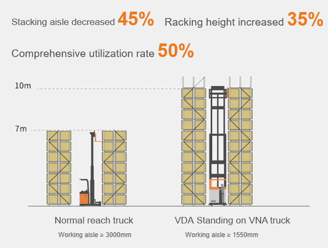 ด้วยช่องทางเดินทำงานกว้าง 1650 มม. สำหรับจุดศูนย์กลางการรับน้ำหนัก 600 มม. จึงสามารถรองรับสถานการณ์การขนถ่ายสินค้าที่หลากหลายได้อย่างง่ายดาย ไม่ว่าคุณจะอยู่ในธุรกิจโลจิสติกส์ ยา หรือร้านขายของชำ รุ่น VDA ก็จะมอบประสบการณ์ที่ยอดเยี่ยมให้กับคุณ